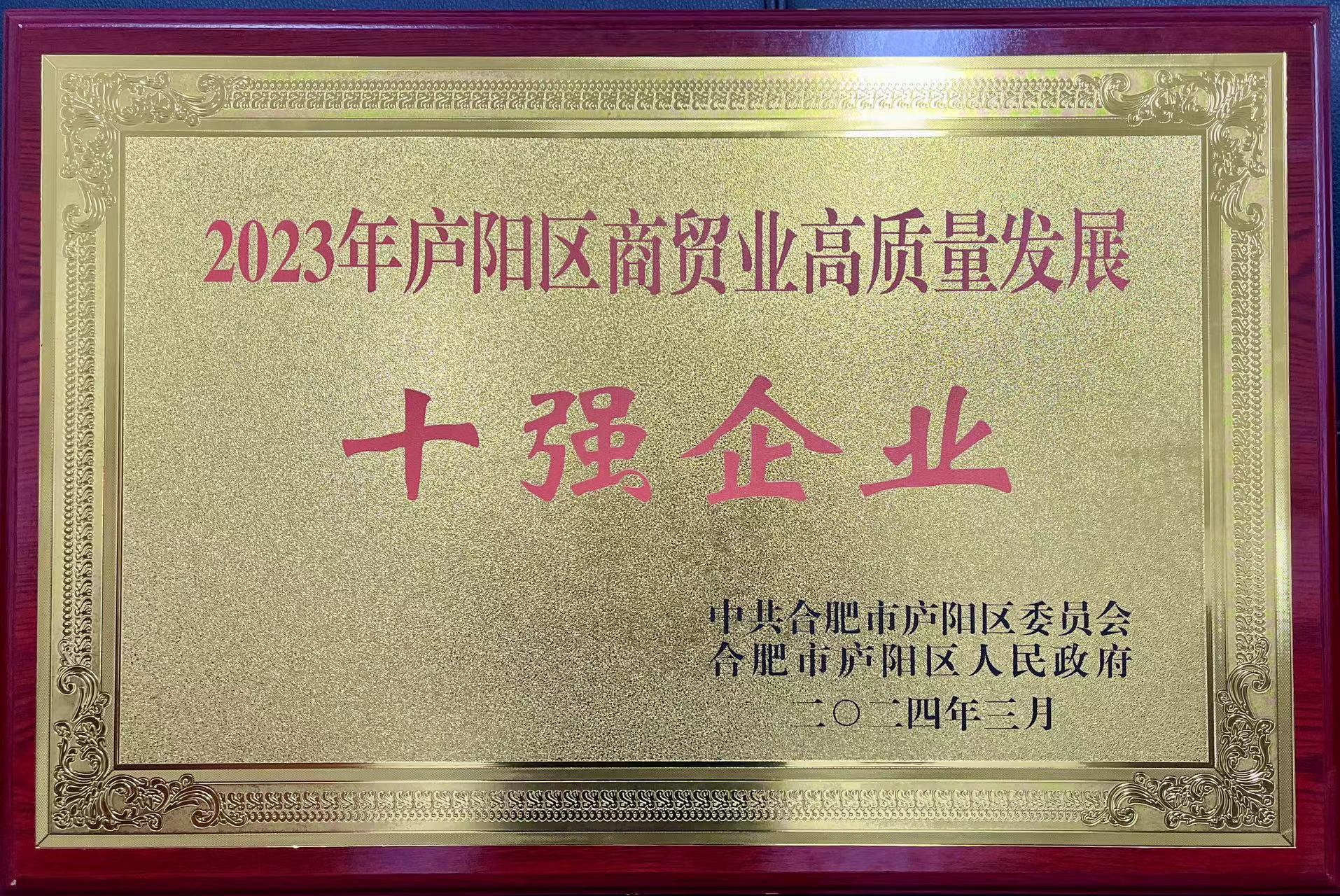 為大力弘揚企業家精神,激勵企業家更加奮發有為干事創業,廬陽區委區政府印發《關于表揚2023年度合肥市廬陽區服務業、金融業、商貿業、工業、建筑業高質量發展10強企業和新質生產力優秀企業的通報》,對合肥市軌道交通集團有限公司等服務業高質量發展10強企業、建信信托有限責任公司等金融業高質量發展10強企業、安徽省順朝物資有限公司等商貿業高質量發展10強企業、志邦家居股份有限公司等工業高質量發展10強企業、中鐵四局集團第一工程有限公司等建筑業高質量發展10強企業、合肥安信瑞德精密制造有限公司等15家新質生產力優秀企業予以通報表揚,并于3月5日召開的廬陽區推動經濟高質量發展大會上向上述企業授牌。