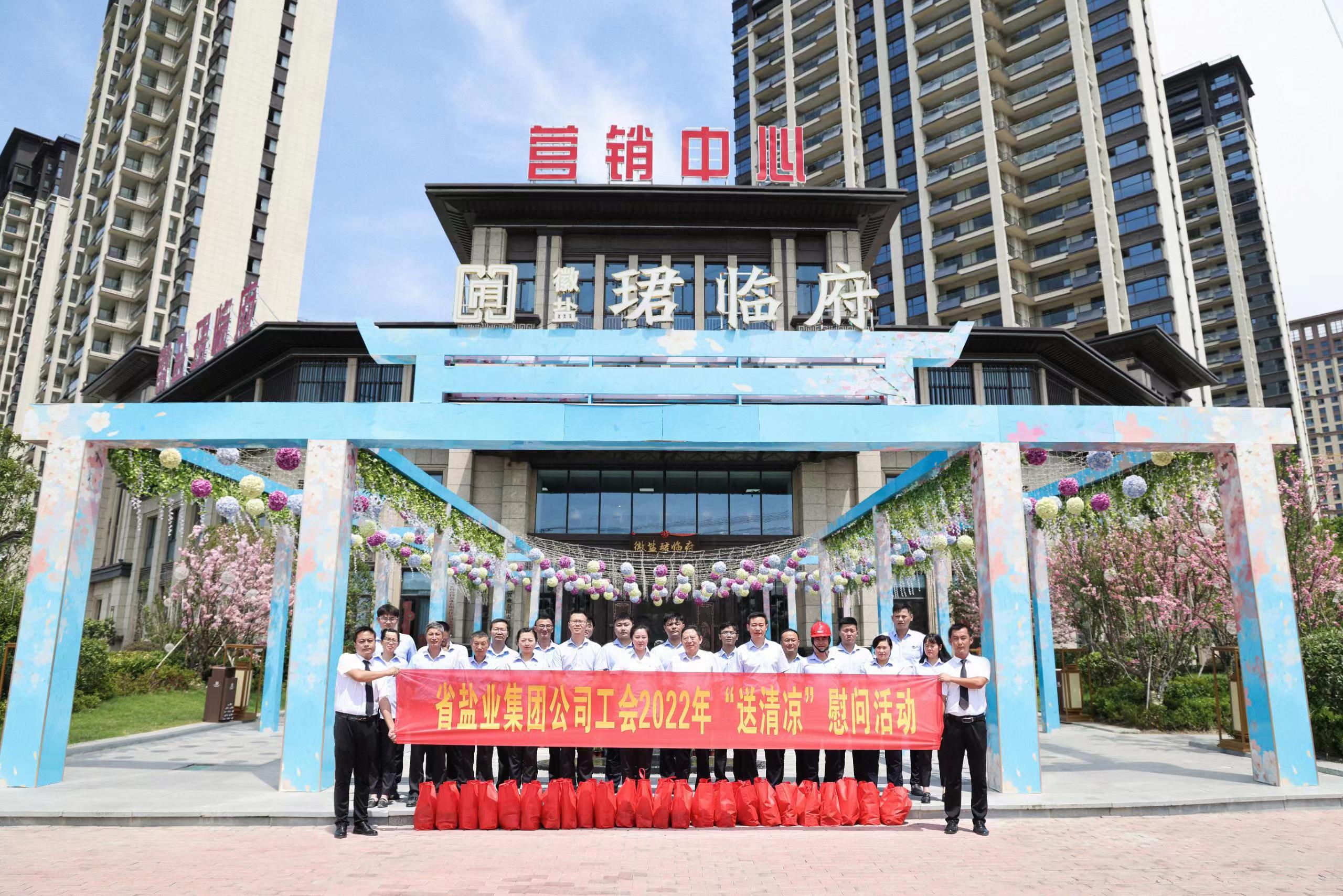 集團公司工會看望慰問了六安市鹽業公司、霍邱鹽投置業有限公司一線職工,并參觀了地產集團霍邱項目公司品牌展廳和文化長廊。工會為高溫下堅守崗位的一線職工送去防暑降溫物品,詳細詢問了職工工作情況,叮囑大家要注意防暑降溫,科學合理安排工作時間,勞逸結合,統籌做好疫情防控相關工作,確保安全生產和自身身體健康。