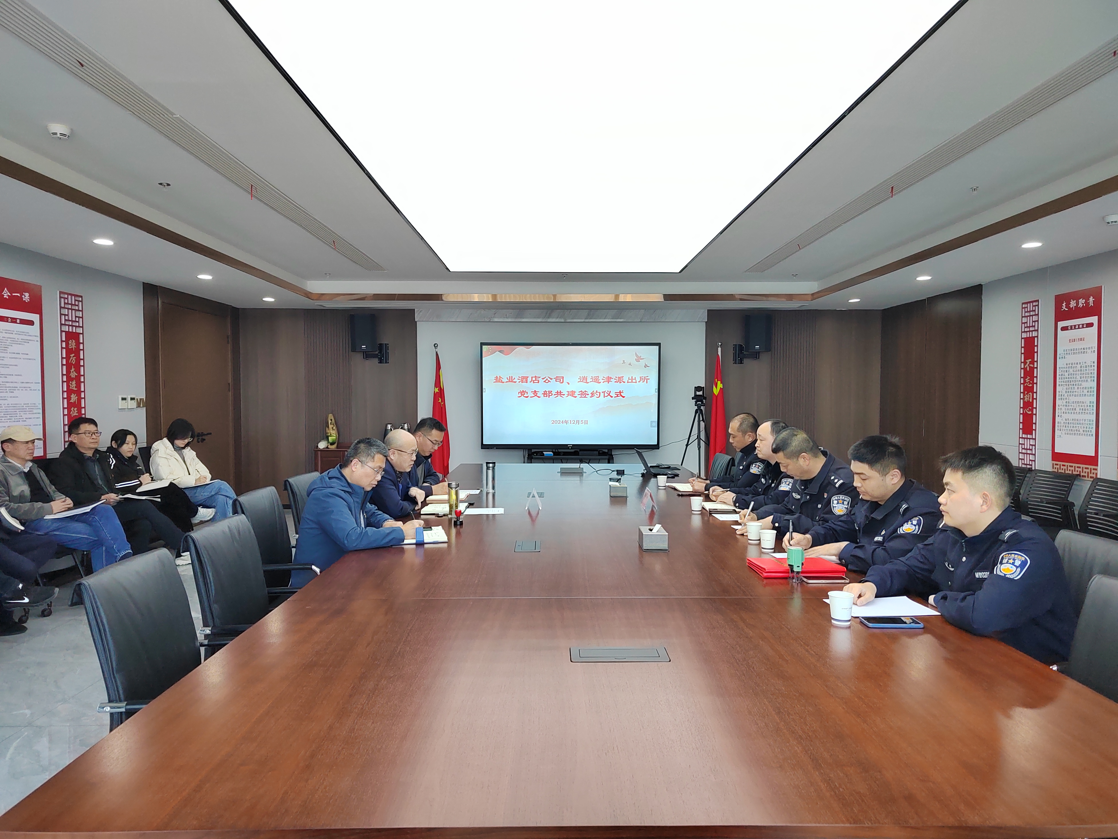 12月5日下午,酒店公司黨支部與逍遙津派出所黨支部聯合開展了黨建共建活動,酒店公司全體黨員、逍遙津派出所黨員民警共20余人參加。