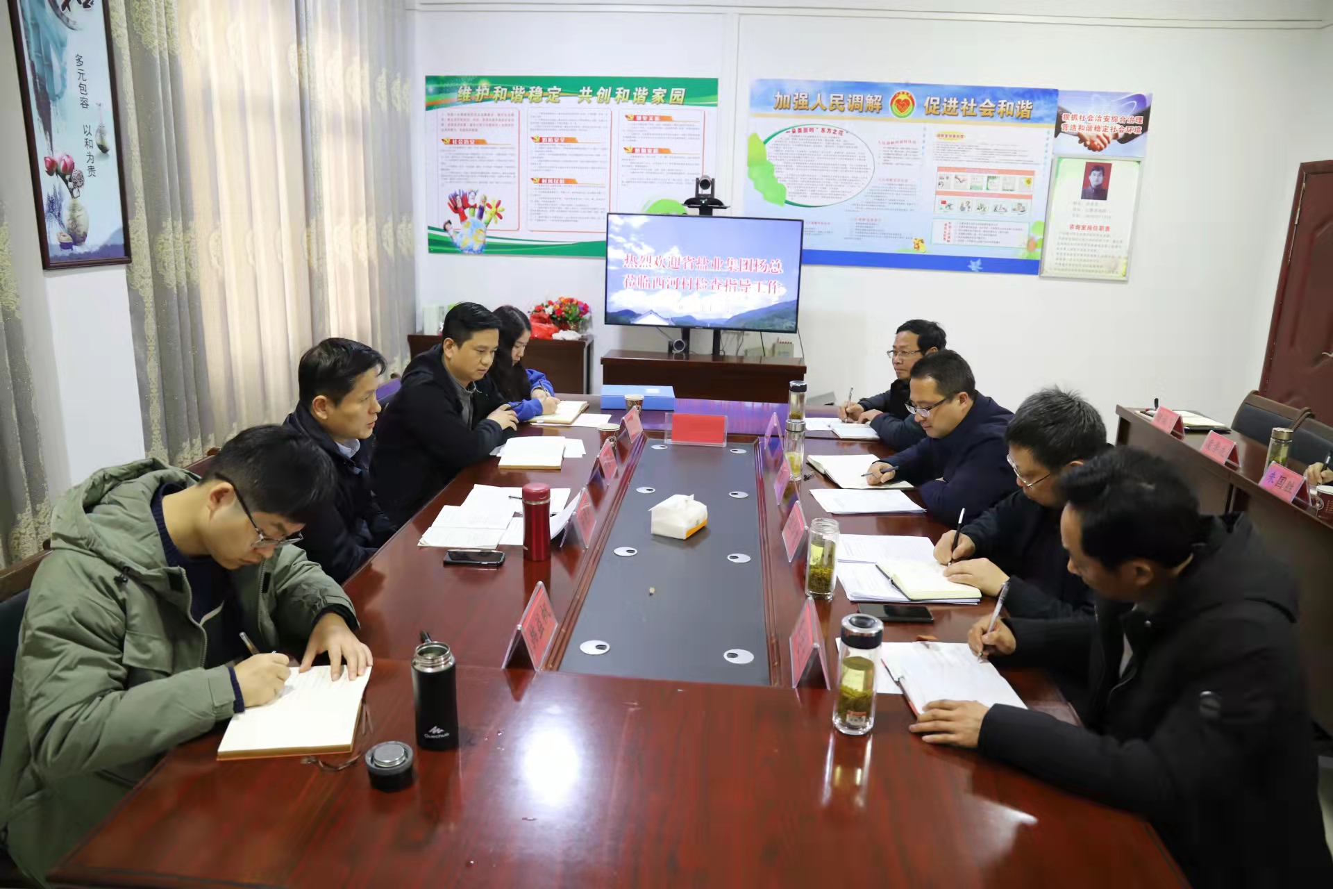 項目調研結束后,楊曉彬一行與塔畈鄉(xiāng)領導、村兩委成員及駐村工作隊進行了座談交流,集團公司第二支部黨員代表也與村兩委就下一步的黨建結對共建作了交流討論。