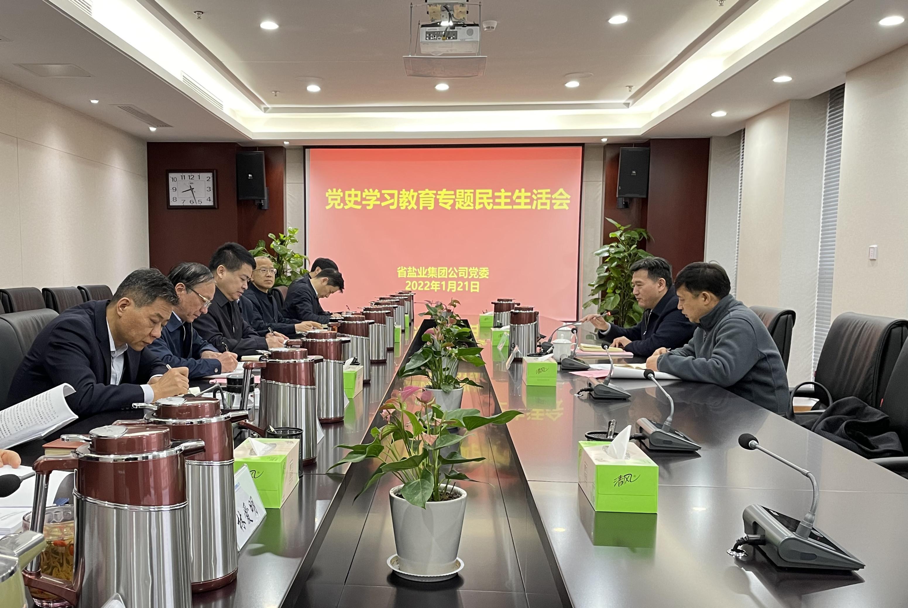 1月21日下午,省鹽業集團公司黨委召開領導班子黨史學習教育專題民主生活會。省國資委黨史學習教育巡回指導組成員、省國資委監督一處處長王維坤一行到會指導。集團公司黨委書記、董事長羅太忠主持會議,其他班子成員參加會議,本部黨建部門主要負責人列席會議。