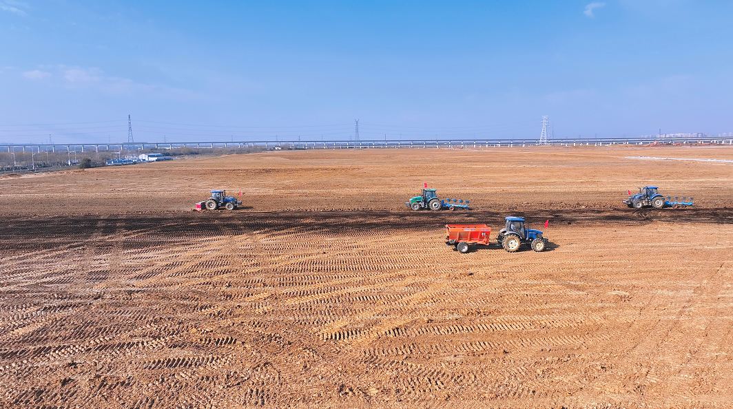 圖為引江濟淮工程高新區2號棄渣場臨時用地土地復墾項目土壤改良作業現場