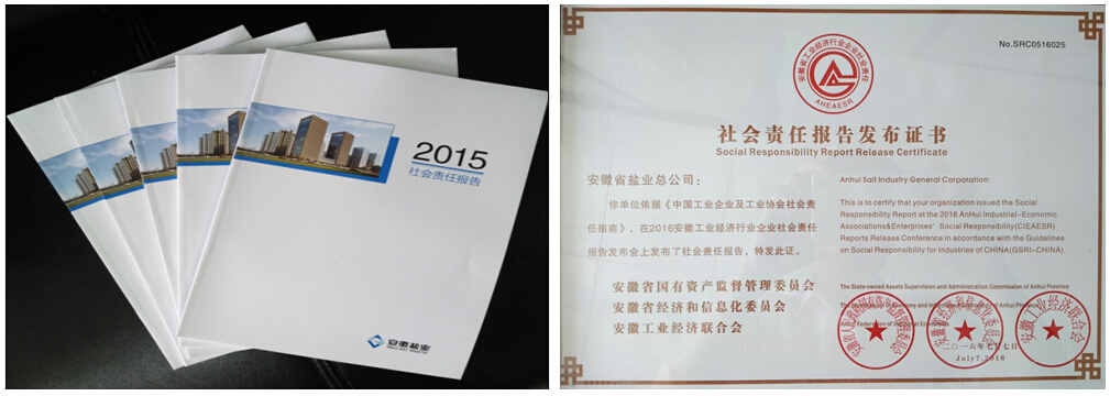 7月7日,在由安徽省國資委、經信委和工業經濟聯合會聯合舉辦的安徽省企業社會責任報告發布會上,安徽鹽業2015年社會責任報告正式對外發布。