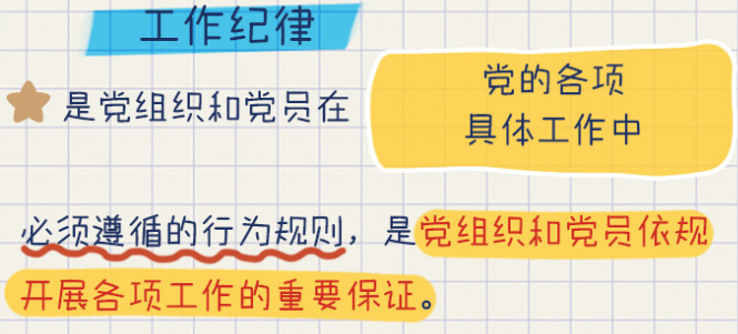 工作紀(jì)律是各級(jí)黨組織和廣大黨員在工作中必須遵循的行為規(guī)范,是確保我們黨的各項(xiàng)工作沿著正確方向開展的必然要求。