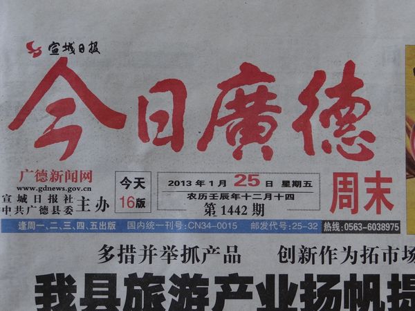 摘自2013年1月25日《宣城日報·今日廣德》2版