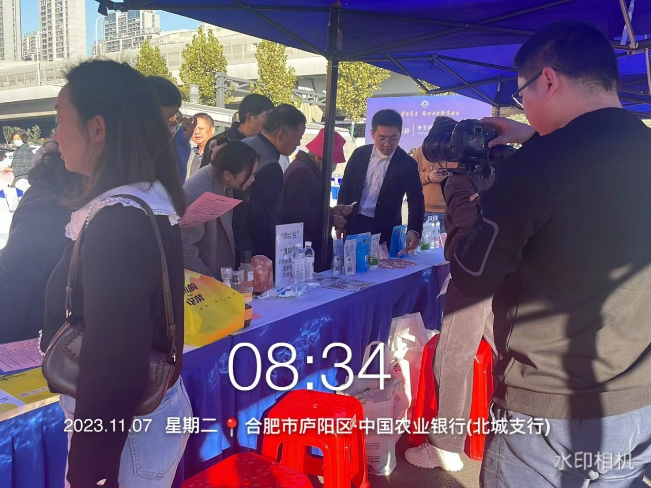市公司工作人員攜帶展板、宣傳資料以及實物等,進行食品安全科普宣傳,展示不符合食品安全國家標準的“網紅鹽”和“臭腳鹽”,宣傳中鹽牌綠色低鈉鹽、綠色深井碘鹽等食鹽,為消費者推薦質優價廉的綠色食鹽,并發放控鹽勺和宣傳材料,推動合肥市民“健康換鹽”。