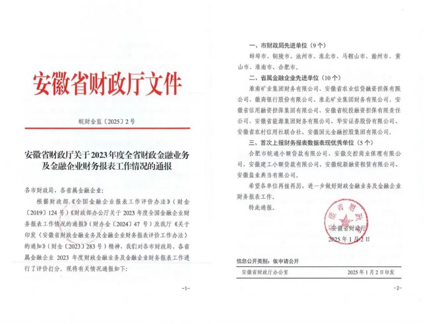 近日,安徽省財政廳依據《全國金融企業報表工作評價辦法》等相關文件精神,對各市財政局和省屬金融企業2023年度財政金融業務及金融企業財務報表工作進行了評價?;整}典當公司榮獲“首次上報財務報表數據表現優秀單位”榮譽稱號。