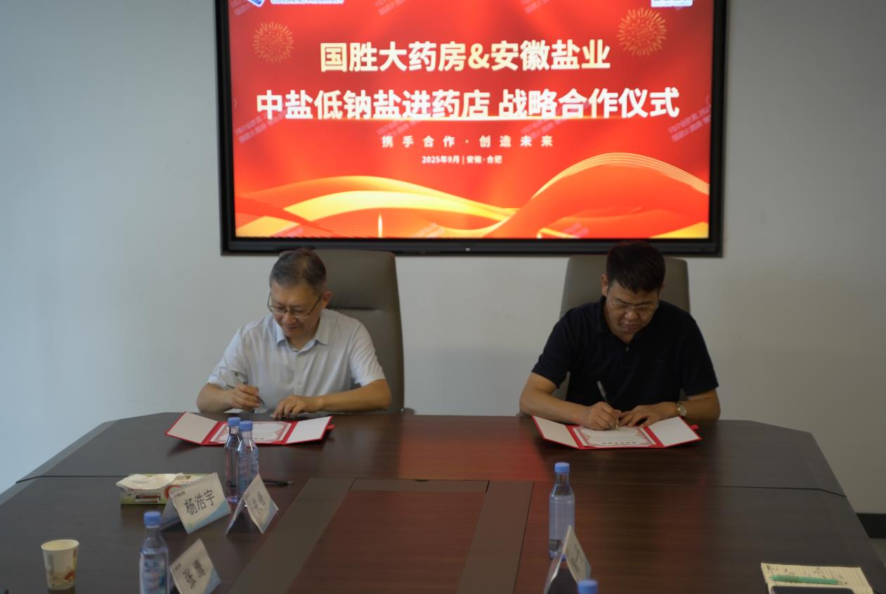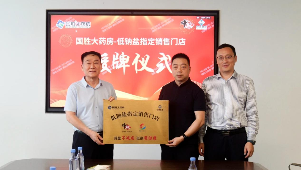 儀式現場,雙方圍繞“高鹽飲食危害防控”與“低鈉鹽全民推廣路徑”展開深入研討,達成了“政策同向、使命同頻”的戰略共識,共同致力于將健康干預覆蓋至家庭單元。隨后,安徽省鹽業集團與國勝大藥房簽署了戰略合作協議,安徽省鹽業集團與中鹽東興公司共同向國勝大藥房授予“中鹽低鈉鹽指定銷售門店”牌匾,宣告低鈉鹽的健康推廣與銷售在醫藥渠道正式啟動。